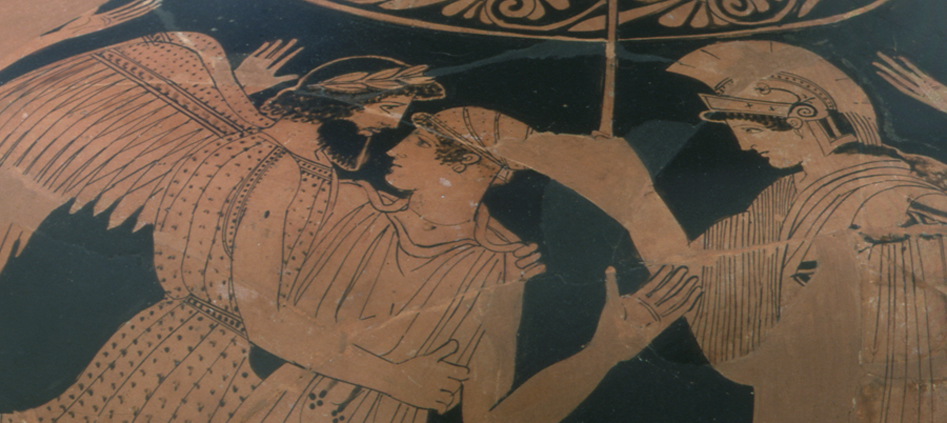 Attic Red-Figure Hydria (Kalpis), with the North Wind, Boreas Abducting Oreithyia (detail) by the Niobid Painter. Greek (Attica), ca. 460-450 B.C.E. Gift of Edward Perry Warren, Honorary Degree, 1926. 1908.3.