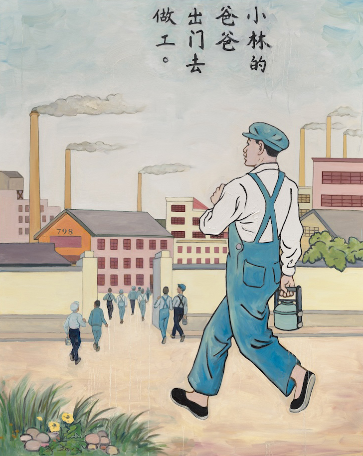 Organized by Georgetown University Art Galleries, and curated by Dr. Dorothy Moss and Georgetown graduate students, Hung Liu: Happy and Gay features works by Hung Liu which adapt and subvert Maoist propaganda cartoons that were published during the 1950s. In the series, Liu revisits cartoons of her youth that were published in children's books and primers (known as xiaorenshu). Like the Dick and Jane readers circulating in the United States during the postwar era, the illustrations were used to socialize children by instilling values such as hard work, family unity, and patriotism. Liu's reformulation of this palm-size historic childhood imagery into large-scale, richly-painted contemporary canvases not only turns mass-produced illustrations into paintings but also raises questions at the intersection of ideology, propaganda, and education. Liu invites viewers to think critically about the words and images that shape our collective identities, challenging us to reimagine them, a form of rewriting history.