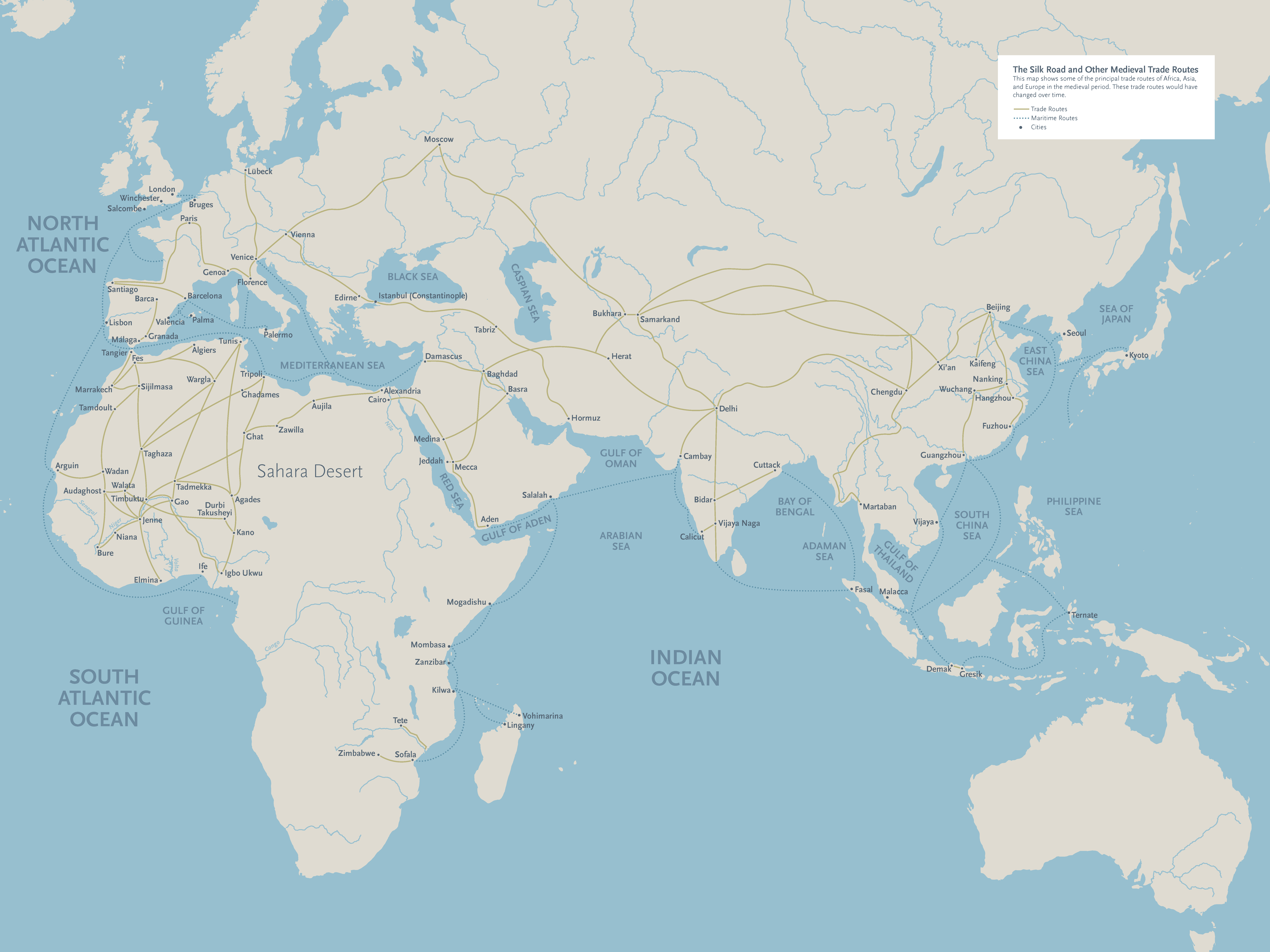 The term ‘medieval’ has long been applied only to Europe, but in the last few decades people have increasingly come to see Europe as part of a series of interconnected networks, created by the travel of ideas, objects, and knowledge as people traded goods, undertook religious pilgrimages, went to war with each other, and migrated to find a better life someplace else.