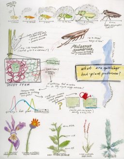 To collect data, Wood scoured the island’s meadows last summer for the telltale globs, noting where she found nymphs and counting how many she found on each plant. She also measured the nymphs’ body sizes. Spittlebugs are unusual in that they are one of the few insects who feed on more than three plant families. Most other insects specialize. One contribution of Wood’s research is a better understanding of how the “generalist” strategy works for insects.