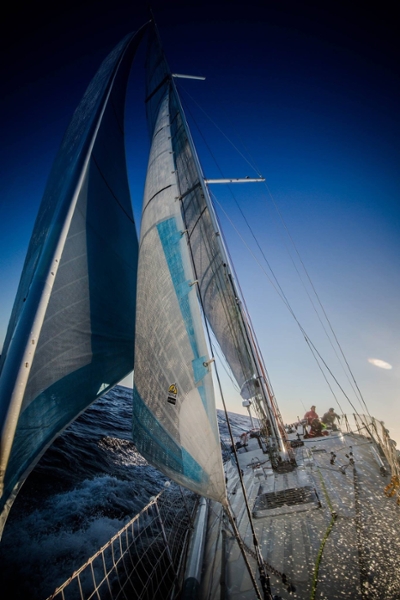 Maiden is a Farr 58, which was launched originally as Disque D’Or III in 1979 to win the Whitbread Round the World Race. She’s aluminum, with new carbon fiber spars and Doyle Stratis sails. We sail with eight or nine people onboard, rotating four people on deck in four- hour watches.