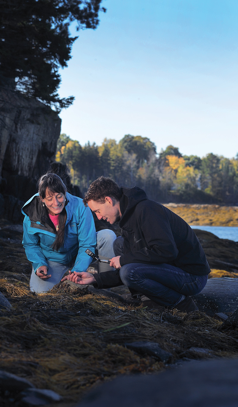 In more typical years, Biology of Marine Organisms takes advantage of Bowdoin’s location on the coast of Maine to introduce students to marine ecology. Throughout the semester, the class makes field trips to nearby rocky intertidal zones, mudflats, and salt marshes.